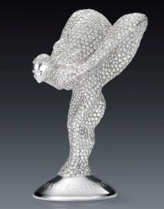 Catching up with Torsten briefly again this week reminded me that perhaps I should write something about Spirit of Ecstasy especially as this year she celebrates her centenary. To commemorate the occasion, Rolls-Royce Motor Cars had commissioned world-renowned British photographer Rankin to create a series of one hundred contemporary images, each one inspired by the Spirit of Ecstasy. The pieces were wonderful and I still have pictures of this amongst my favourite photographs so far this year. This week though, also in celebration of the centenary of the Spirit of Ecstasy, the distinctive hood ornament adorning all Rolls-Royce models, a diamond-enrobed commemorative model valued at $250,000 has been created by Mouawad Jewellers. Its stunning to say the least – I put a picture of this online but my BB camera didn’t do any justice to it.