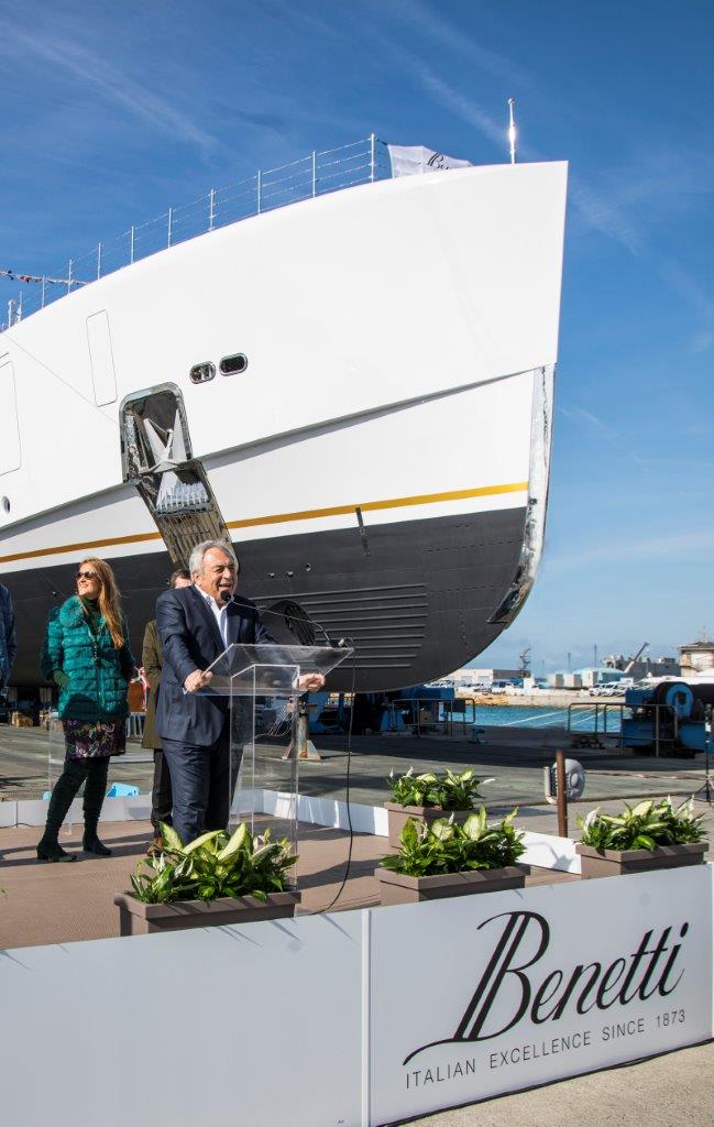 Yesterday Benetti, in a festive atmosphere at its Livorno shipyard, launched 70-meter superyacht FB273, a symbol of the excellence on which Benetti has always prided itself. Built for an expert Owner, the yacht has a steel hull and an aluminium superstructure, six decks and a highly distinctive design that enhances both functionality and performance. The elegant lines of the exteriors are the work of Benetti’s in-house designers, while the interiors are the work of Laura Pomponi and her design Team. Construction work was supervised on behalf of the Owner by Bureau Veritas Solutions M&O.