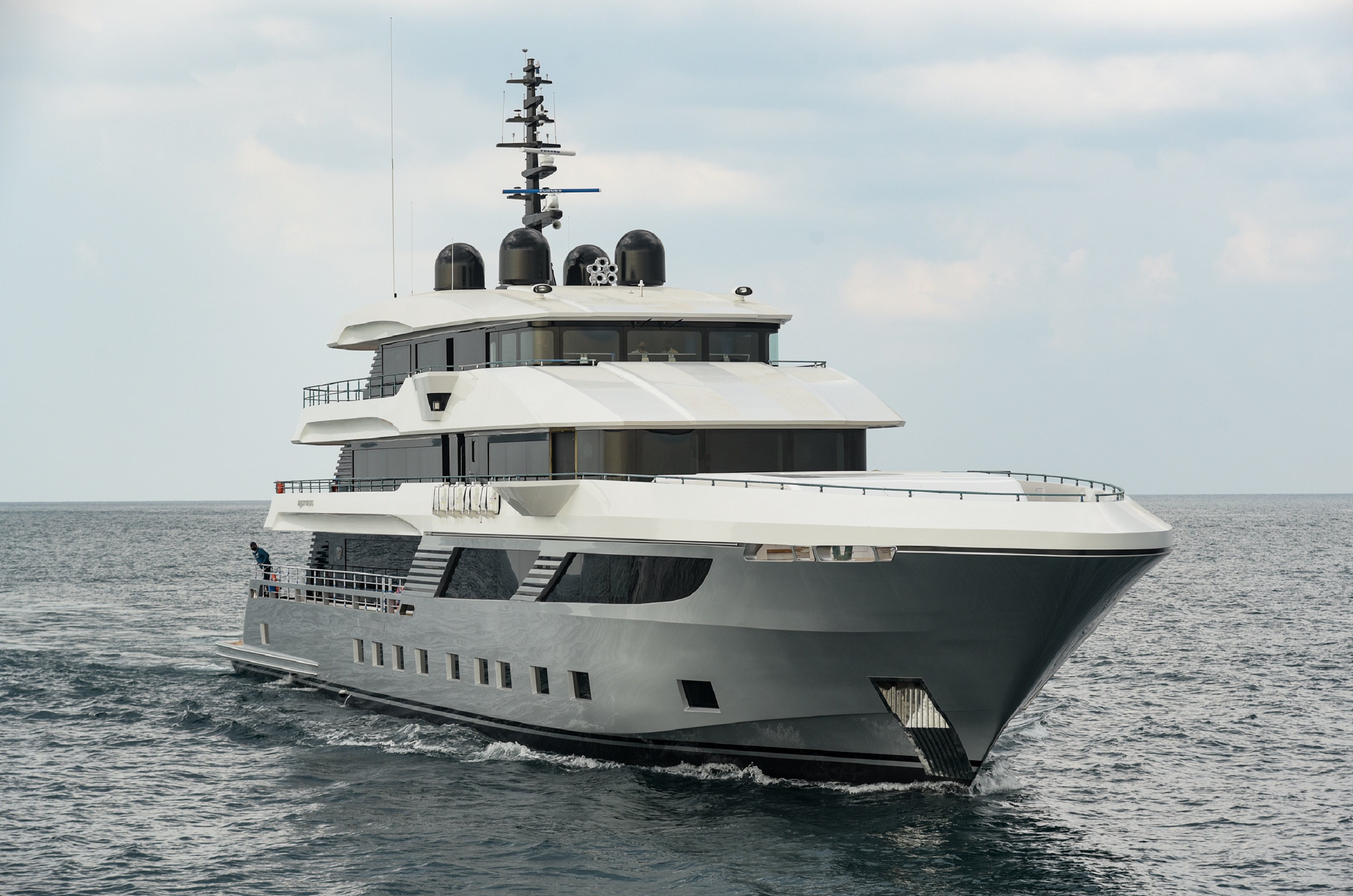 Built to the specifications outlined by the UK’s Maritime and Coastguard Agency (MCA) for yachts over 500 GT, Majesty 175 has a beam of 31.6 ft (9.62 metres). Despite its gross tonnage (GT) of 780, she can cruise even through low-draft areas, drawing just 2.25 metres of water, as she is built using advanced composite materials such as carbon fibre and vinylester. The shallow draft also enables close beach access.