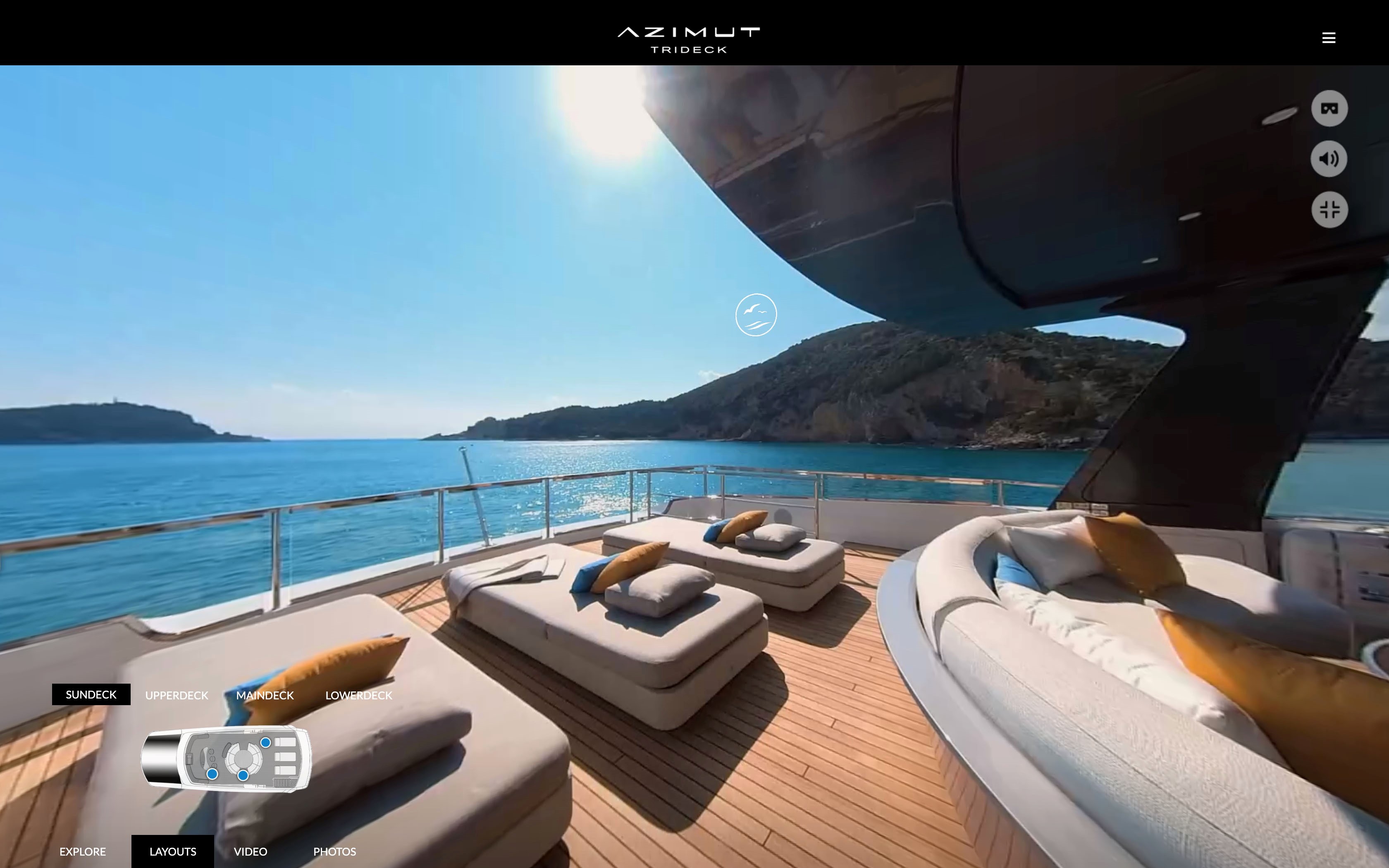 This immersive, dynamic tour of the yacht is also enhanced by a series of In-Depth Hotspots, which when clicked on play videos containing details about all the advanced technology on board.