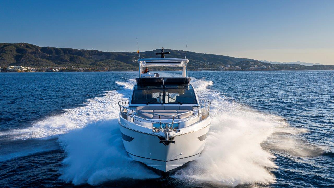 Measuring 18.6M, the new model features a finely styled exterior by revered British yacht designer Bill Dixon, with interior design by Kelly Hoppen. The Pearl 62 is the only yacht in this size class to offer accommodation for eight guests across four cabins, including a full beam owner’s suite with a private entrance – plus the owner’s choice of a crew cabin or jet ski garage. Designed around optimizing the owner’s experience, other highlights include an aft galley open to the cockpit, a vast flybridge, a foredeck lounge all with the benefit of Volvo IPS pod drive propulsion and joystick control.