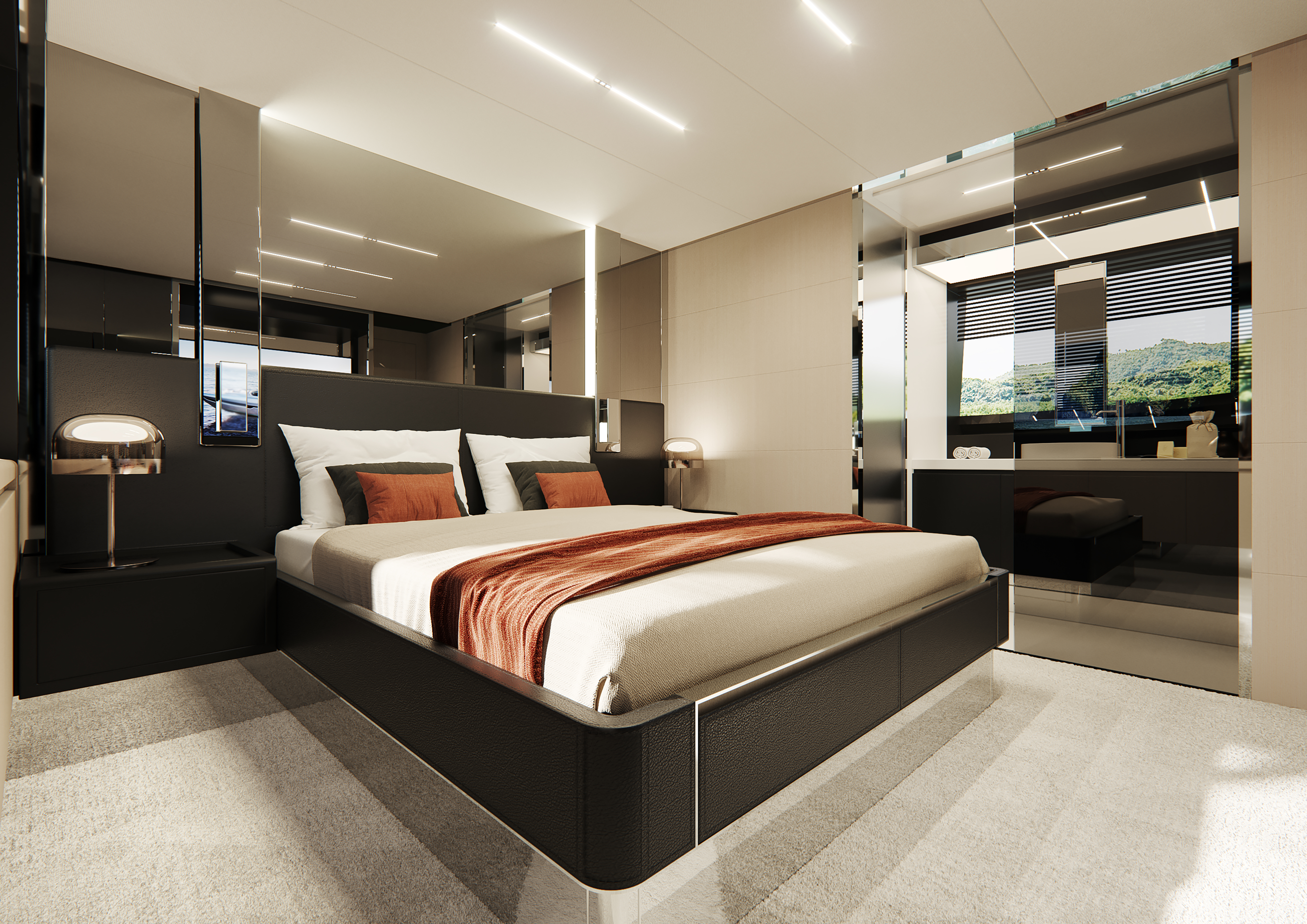 As always, there was a special focus on acoustic insulation in the cabins. All the forward and aft walls in the master suite have additional insulation to guarantee maximum comfort with regard to both other areas and the galley.
