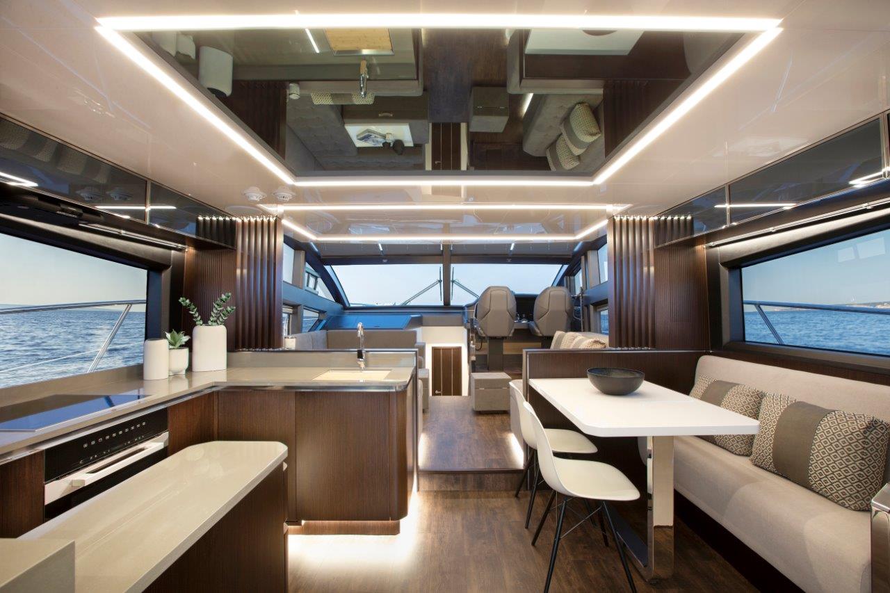 The Pearl 62 is a marvel of modern yacht design, offering a unique blend of comfort and innovation. Measuring 18.6m, the Pearl 62 is the only yacht in the size-class to offer accommodations for eight guests across four cabins, including a full-beam owner’s suite with private entrance and the choice of a crew cabin or a jet ski garage. Key features include an aft galley that opens to the cockpit, an expansive flybridge, and a foredeck lounge. Enhanced with Volvo IPS pod drive propulsion, including joystick control and station-keeping function for effortless owner-operated maneuvering, the Pearl 62 exemplifies compact luxury and innovation.