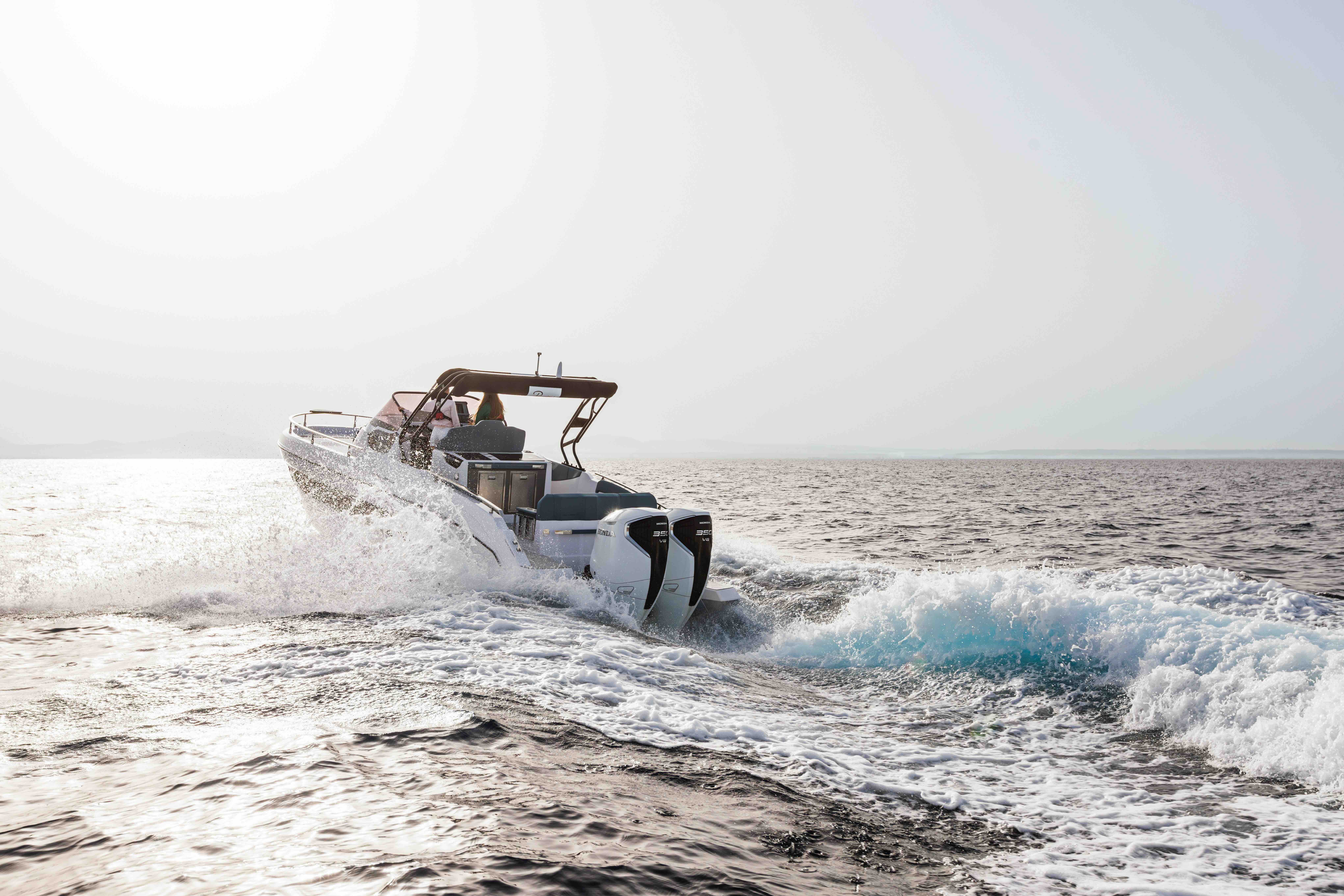 enjoyment of every outing. Cruise control ensures steady navigation, while the tilt limit feature prevents over-trimming when docking. A customisable trim support system maintains optimal engine performance, optimising both fuel efficiency and manoeuvrability.