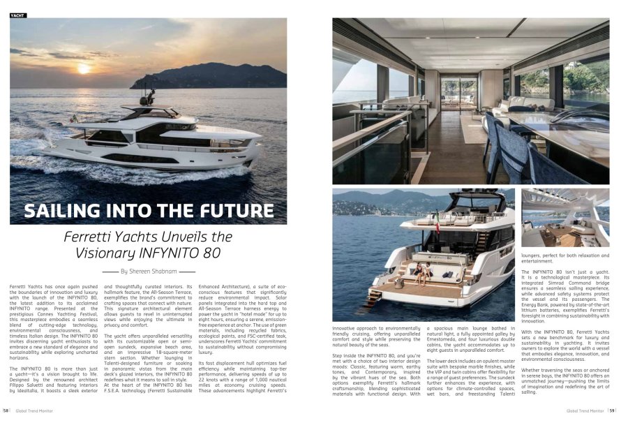 HomeCruising Cruising Speed Meets EleganceSailing into the Future – Ferretti Yachts Unveils the Visionary INFYNITO 80 Share this: Click to share on X (Opens in new window) X Click to share on Facebook (Opens in new window) Facebook Like Loading...